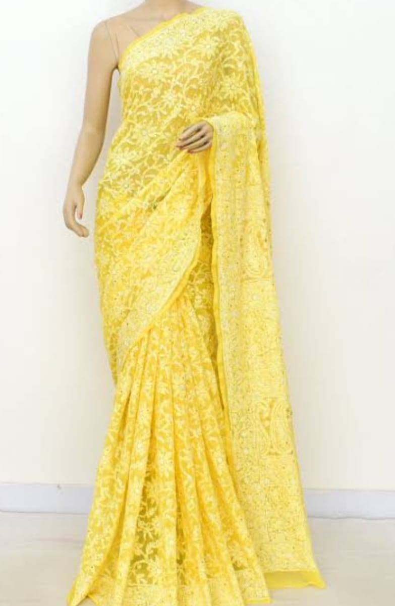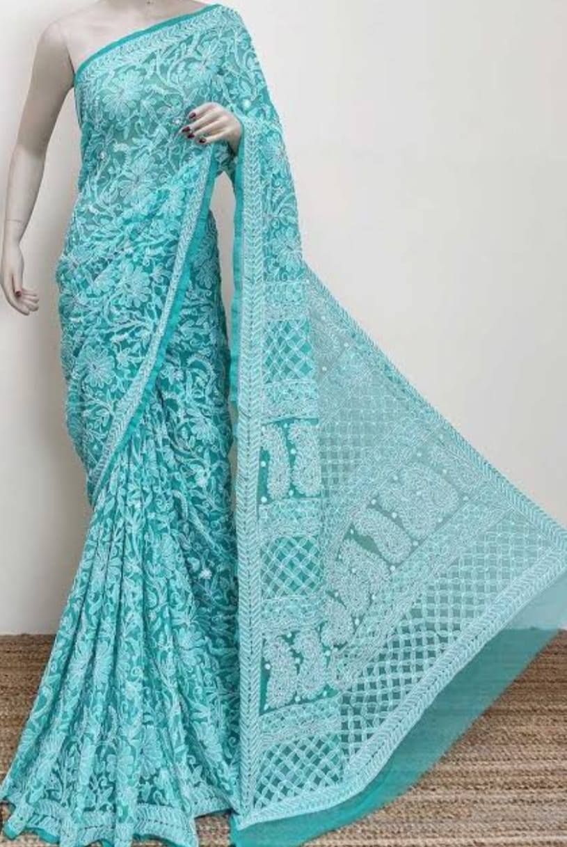 Women’s Georgette Chikonkari Saree with Full Handwork
